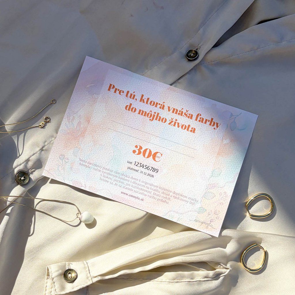 Daruj jej možnosť vybrať si presne to, po čom túži. Tento štýlový darčekový poukaz je ideálnym riešením pre každú príležitosť, či už chceš potešiť svoju mamičku, priateľku, manželku alebo kamarátku. Jeho jedinečnosť spočíva v tom, že doň môžeš vložiť vlastné slová – osobné venovanie, poďakovanie alebo odkaz plný lásky. Vďaka tomu sa z obyčajného poukazu stáva výnimočný a nezabudnuteľný dar, ktorý má skutočnú hodnotu.