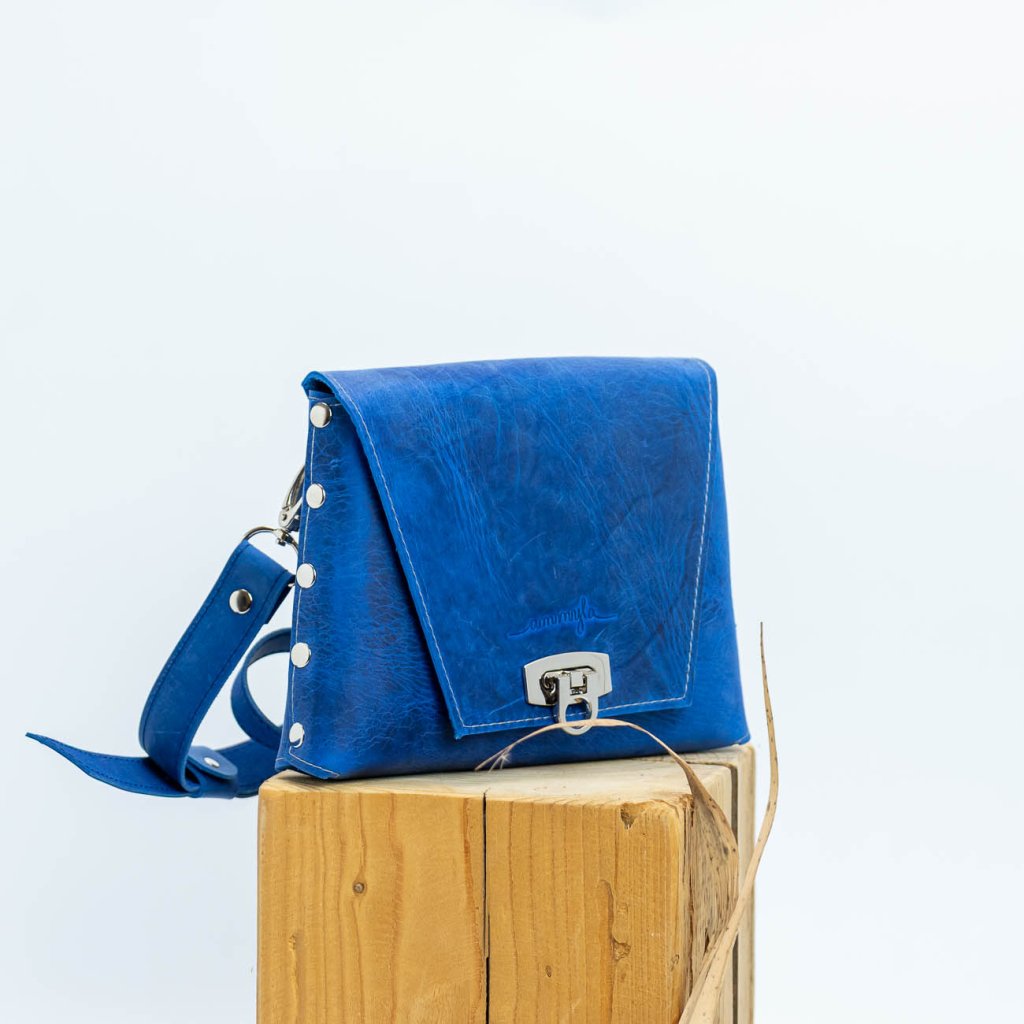 Kožená kabelka Camille Raw (crazy modrá) limitovaný počet kusov