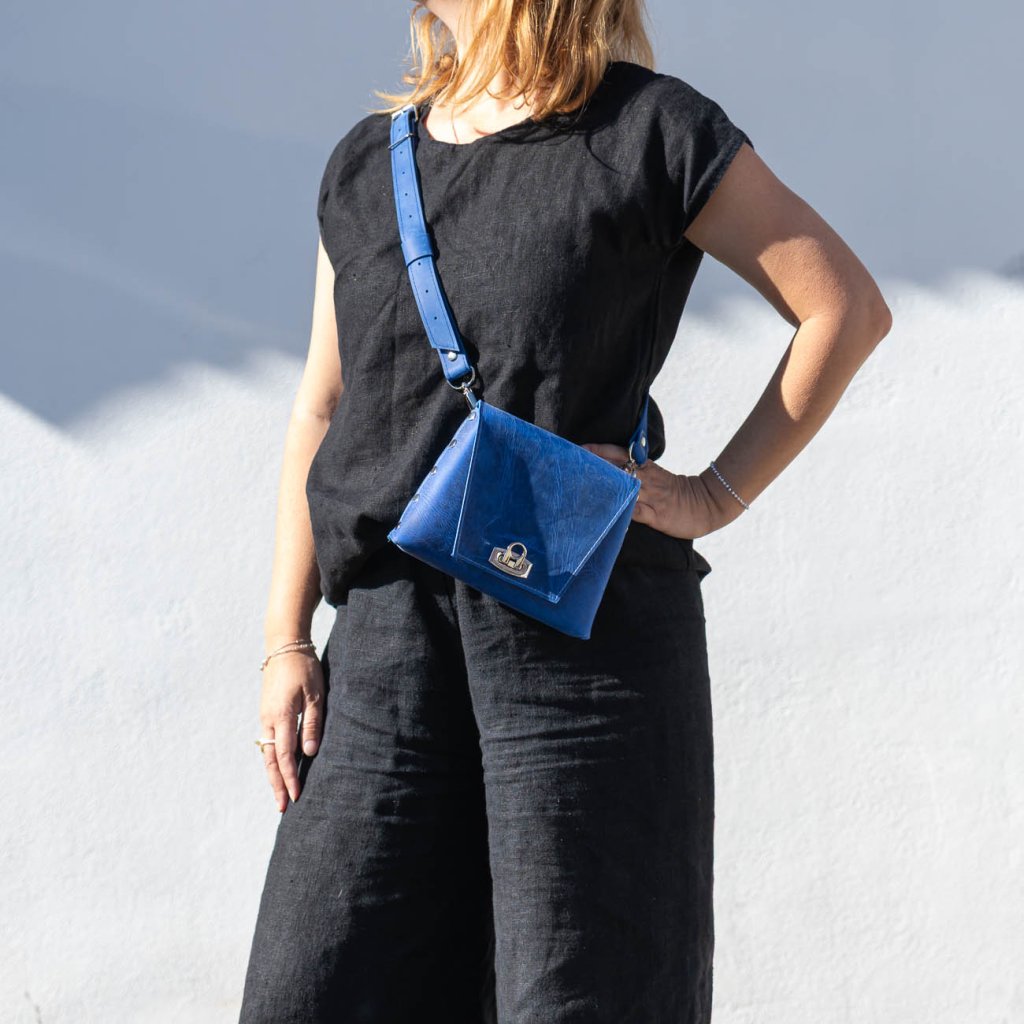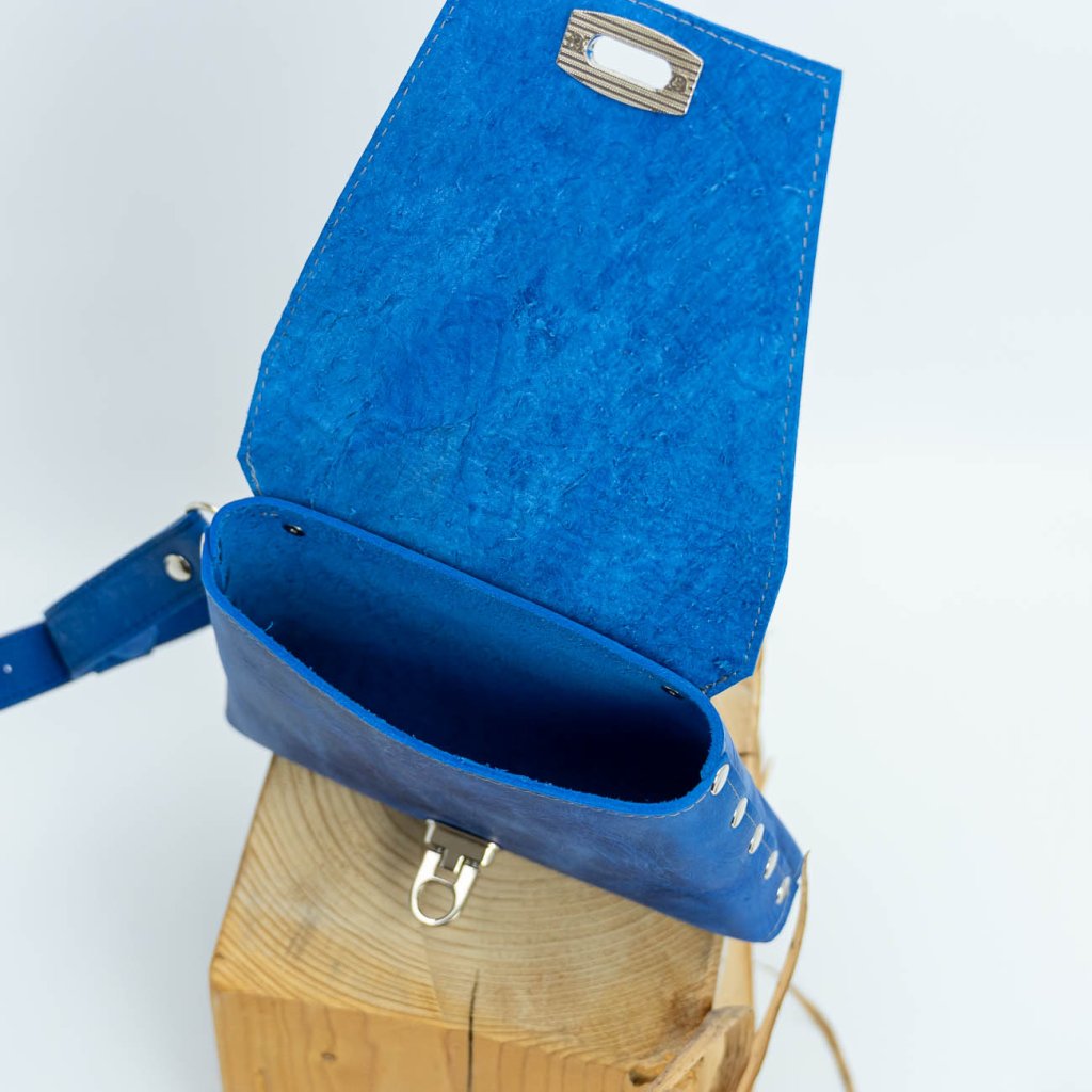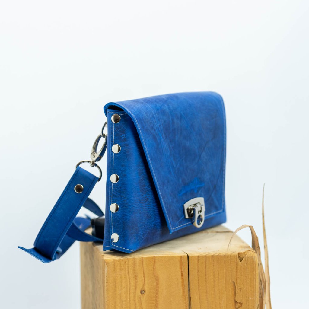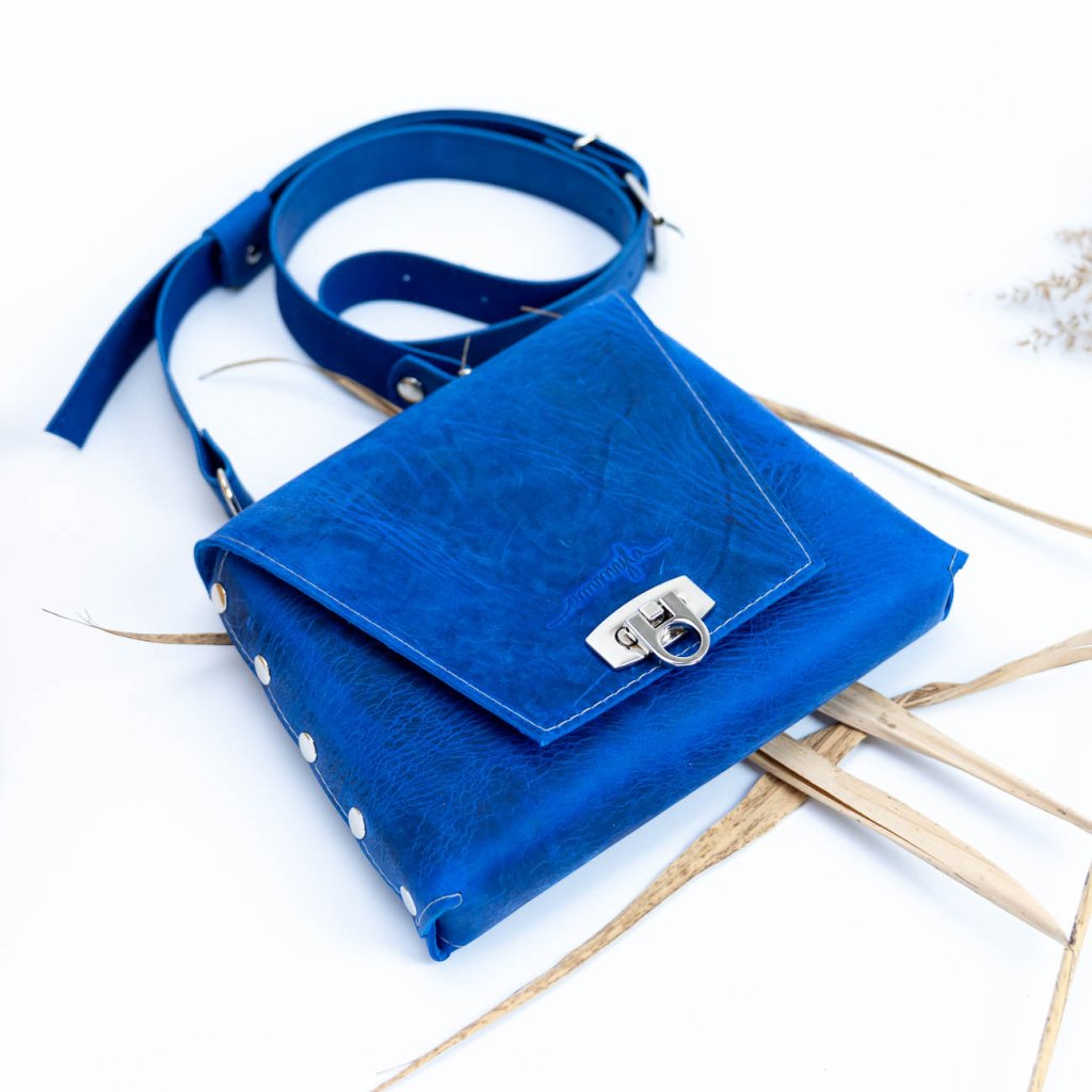 Malá príručná kabelka, alebo ľadvinka, vyrobená z kvalitnej hovädzej kože. Namiesto klasického šitia sú jednotlivé diely spojené pevnými nitmi – šitie nájdete len na popruhoch a po obvode kabelky. Vďaka dĺžkovo nastaviteľnému popruhu si ju prispôsobíte presne tak, ako vám vyhovuje.