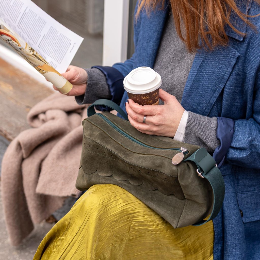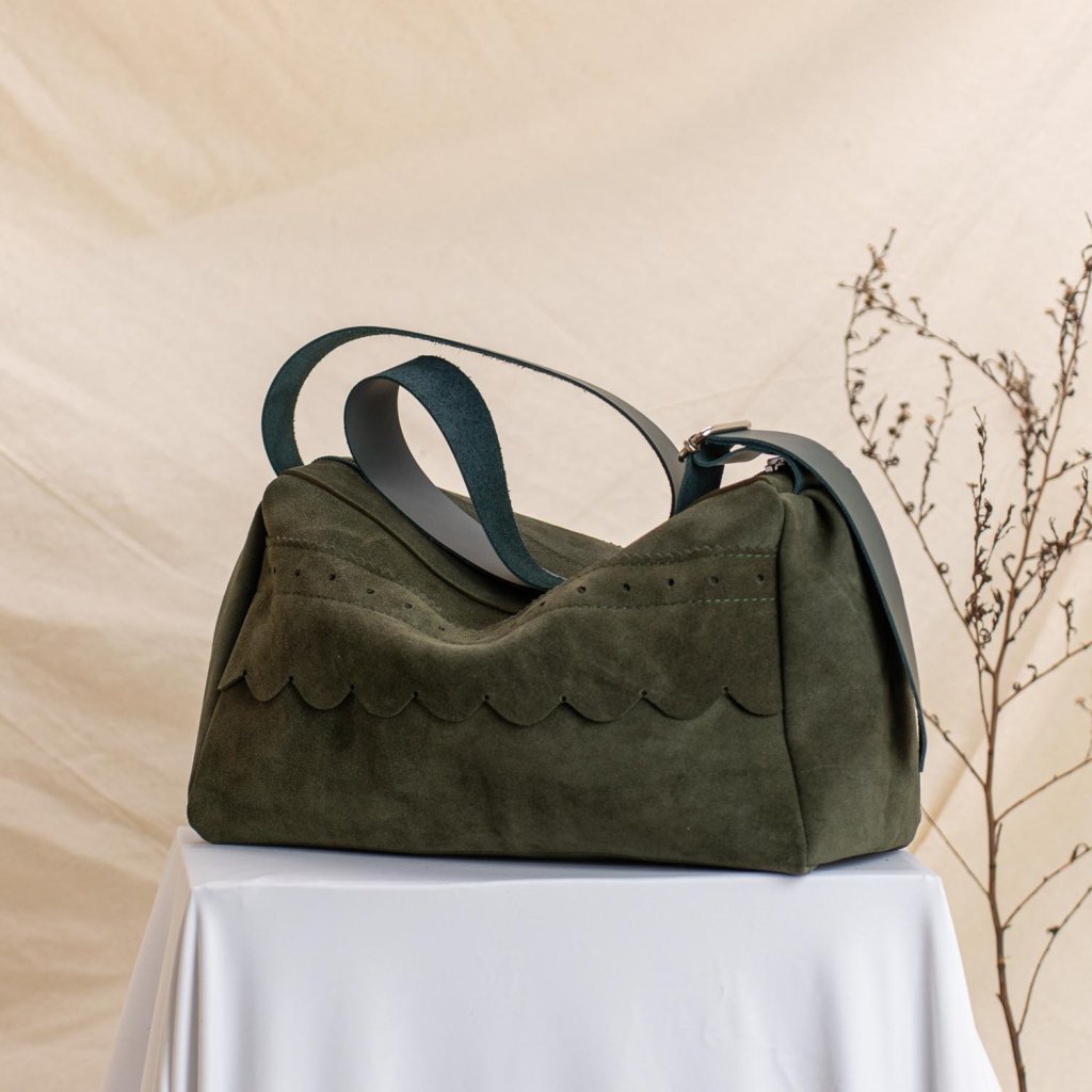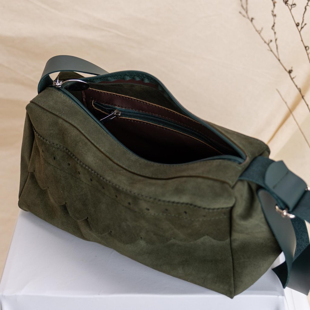 Kožená kabelka Kaya (zelený velúr)