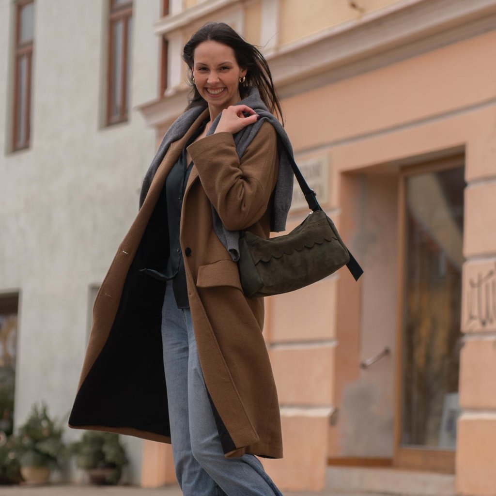 Dominantným prvkom celej Kayi je ozdobný pásik na prednej strane, zdobený jemným ornamentom. Tento detail pôsobí nenápadne, no pritom dodáva kabelke osobitosť a vizuálny akcent. Je to presne ten typ ozdoby, ktorý neprebíja dizajn, ale ho krásne podčiarkuje a robí z Kayi jedinečný kúsok.