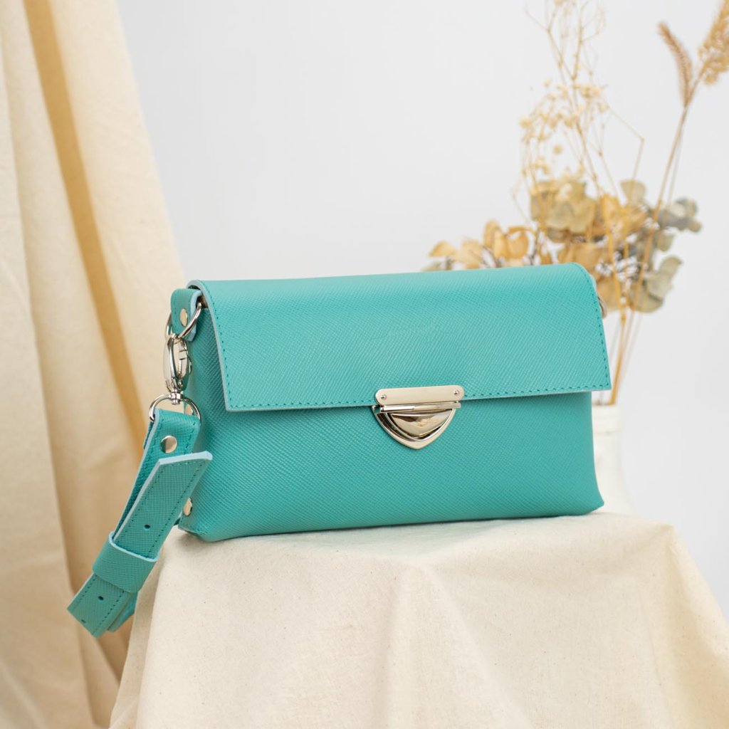 Kožená kabelka MidiMe (azure saffiano) kolekcia Mini Midi Maxi