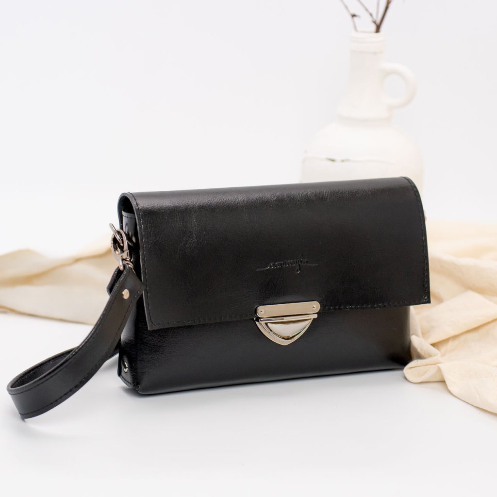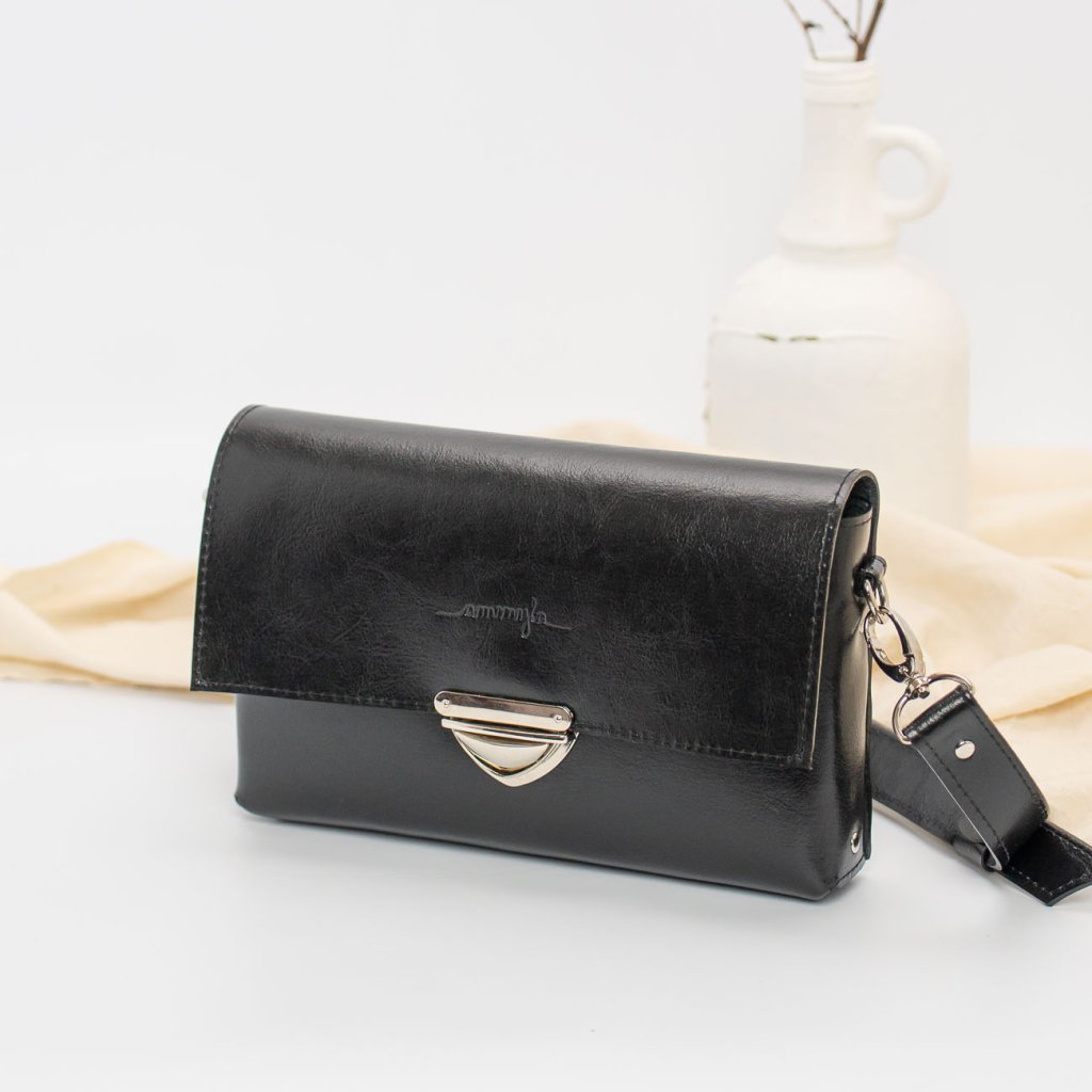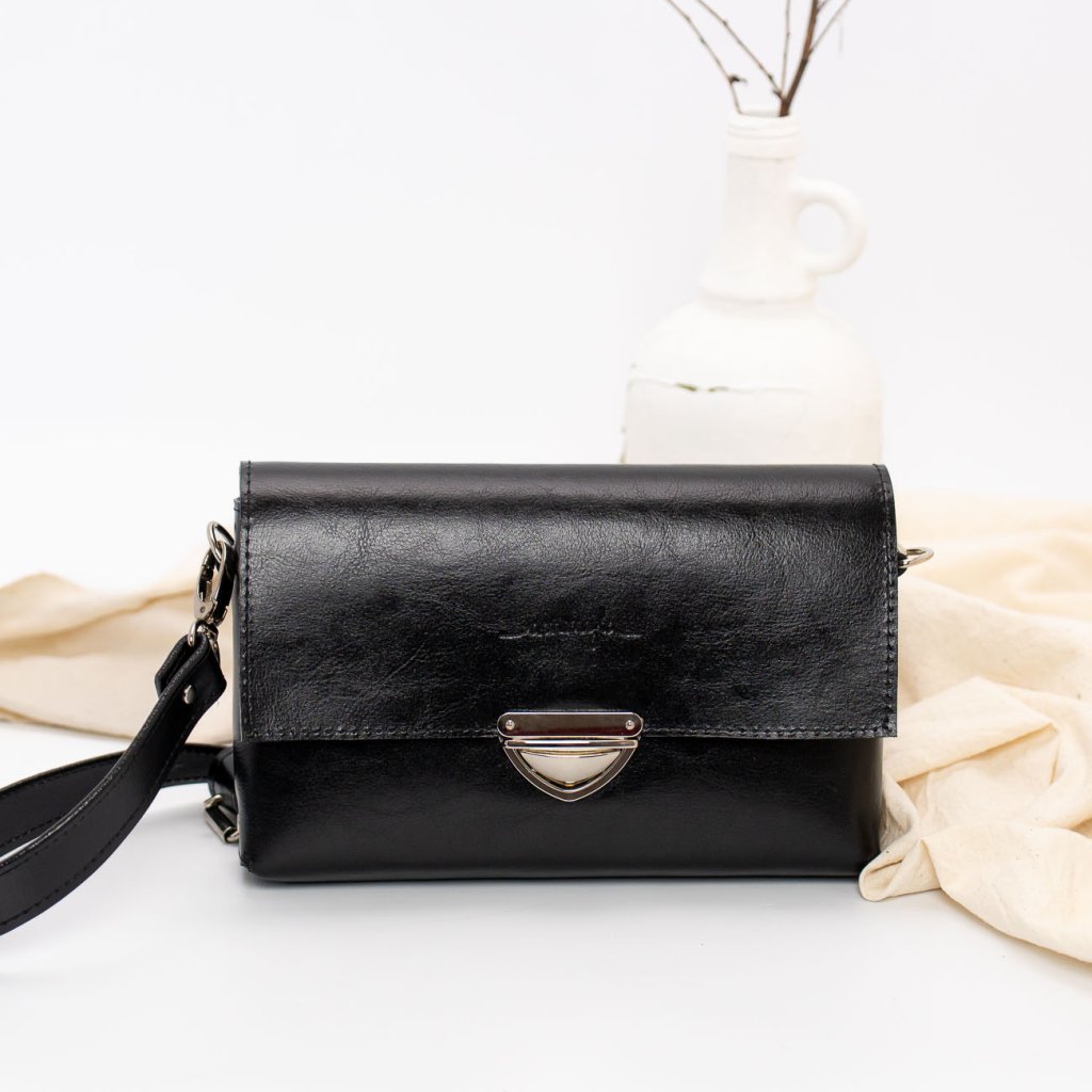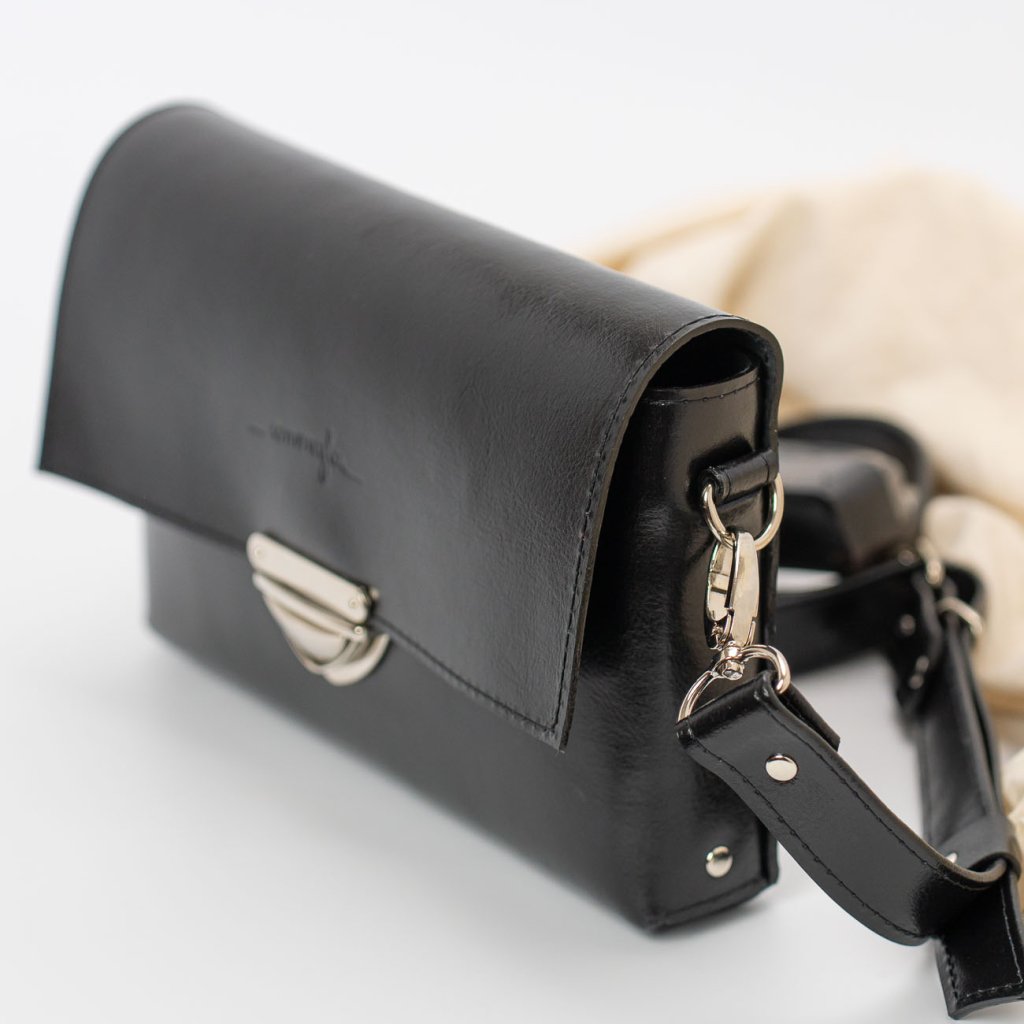 Kožená kabelka MidiMe Neo (lesklá čierna) kolekcia Mini Midi Maxi