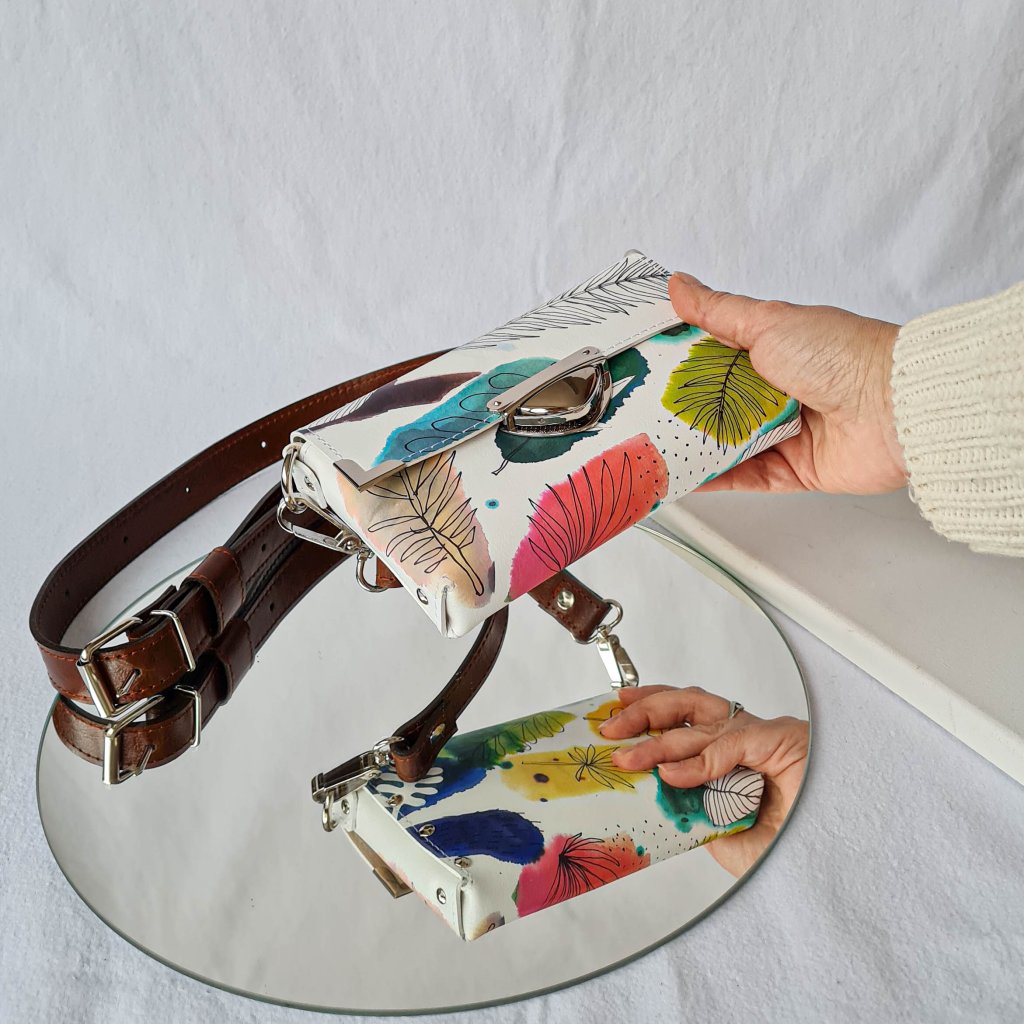 Na výrobu tejto kolekcie sme si zvolili kožu Bycast, ktorá má už sama o sebe povrchovú PU úpravu, pre vyššiu odolnosť a lesk. Vnútro sme podlepili tenkou jemnou kožou, ktorá dáva kabelkám pekný a pevný tvar a hrany sme ošetrili farbou a voskom. Farbu crossbody popruhu vám vieme upraviť, podľa vášho štýlu.