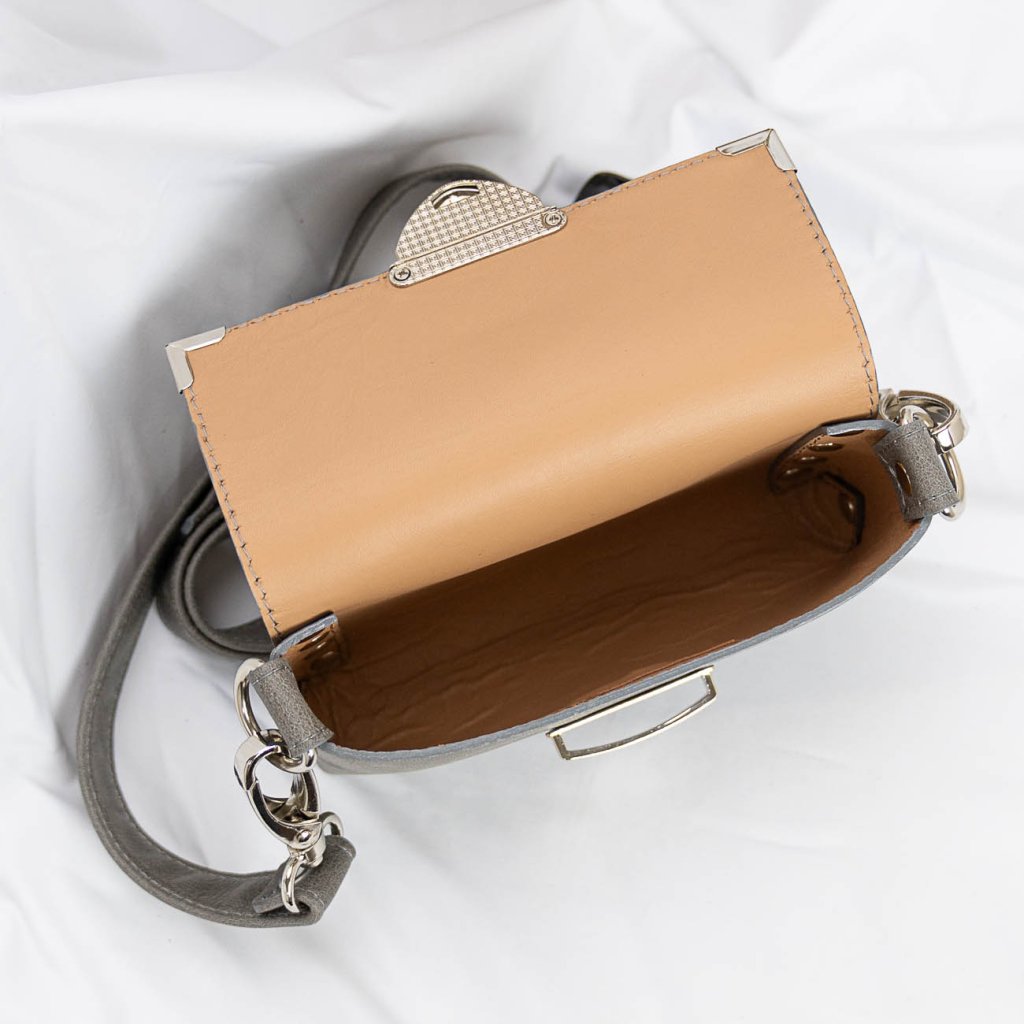 Je ušitá z kvalitnej hovädzej kože. Zatvára sa kovovým zapínaním na príklopke. Spájaná je výhradne prostredníctvom nitov, bez použitia šitia. Kabelka je takisto po obvode prešitá silným stehom. Popruhy sú vyrobené z dvoch vrstiev kože (zošité). Hrany kabelky ako aj popruhov sú ošetrené farbou na kožu a voskom.