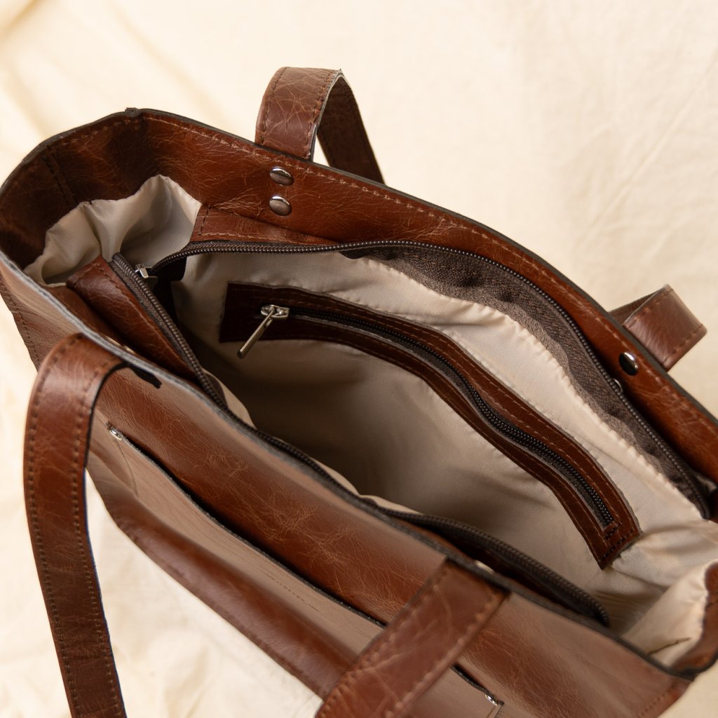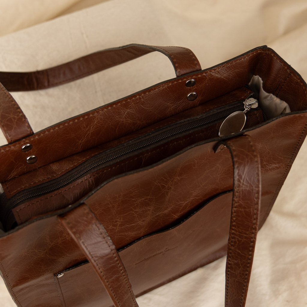 Hoci kabelka pôsobí kompaktným dojmom, svojím objemom prekvapí – zmestí sa do nej všetko potrebné: peňaženka, mobil, diár či menšie kozmetické potreby. Vnútri nájdeš podšívku so dvoma vreckami (z toho jedno uzatvárateľné na zips), zatváranie na zips chráni tvoje veci, a vpredu je praktické otvorené kožené vrecko na drobnosti. Rukoväte sú navrhnuté tak, aby sa pohodlne nosili v ruke aj na ramene. A ak chceš nosiť kabelku crossbody, jednoducho ju doplníš príslušným popruhom.