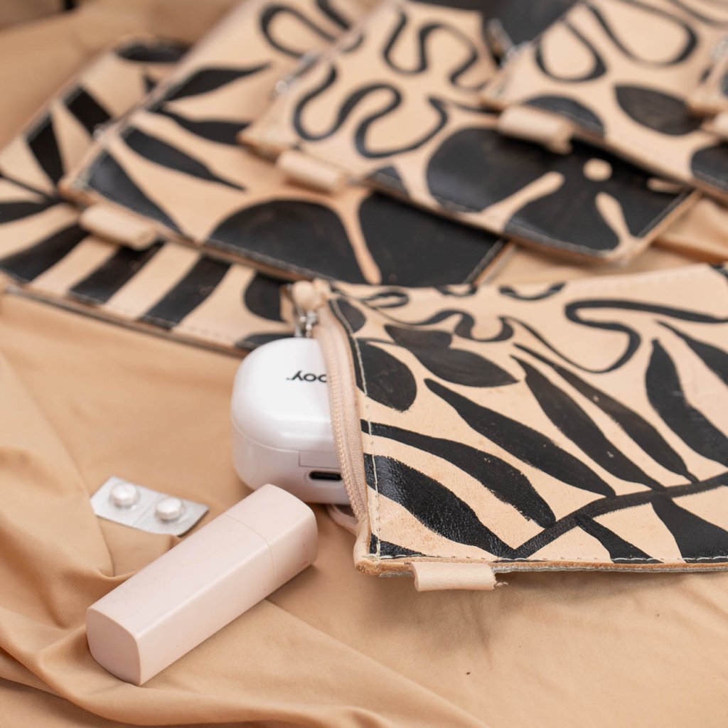 Každá kozmetická taška je originál – ručne maľovaná s láskou, na kvalitnej koži, ktorá si pamätá dotyk štetca. Jemné motívy rozprávajú príbeh nežnosti, farieb a individuality. Zipsom sa otvára svet drobných radostí, ktoré si zaslúžia krásne miesto.
