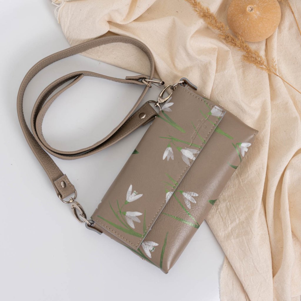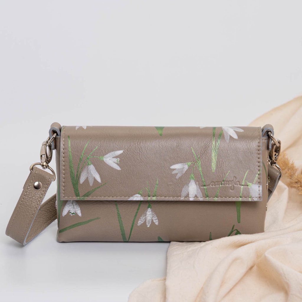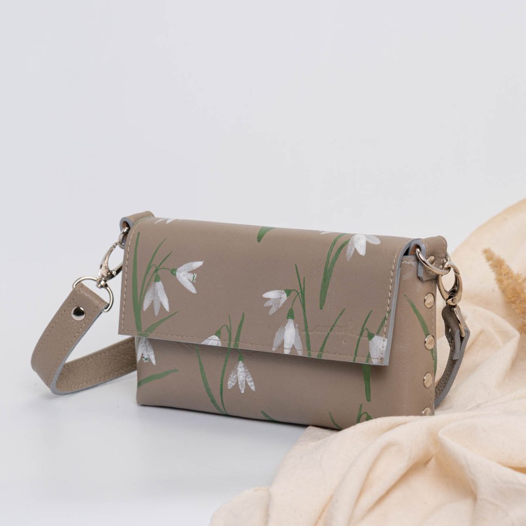 Ručne maľovaná kožená kabelka MidiMe (snežienky)