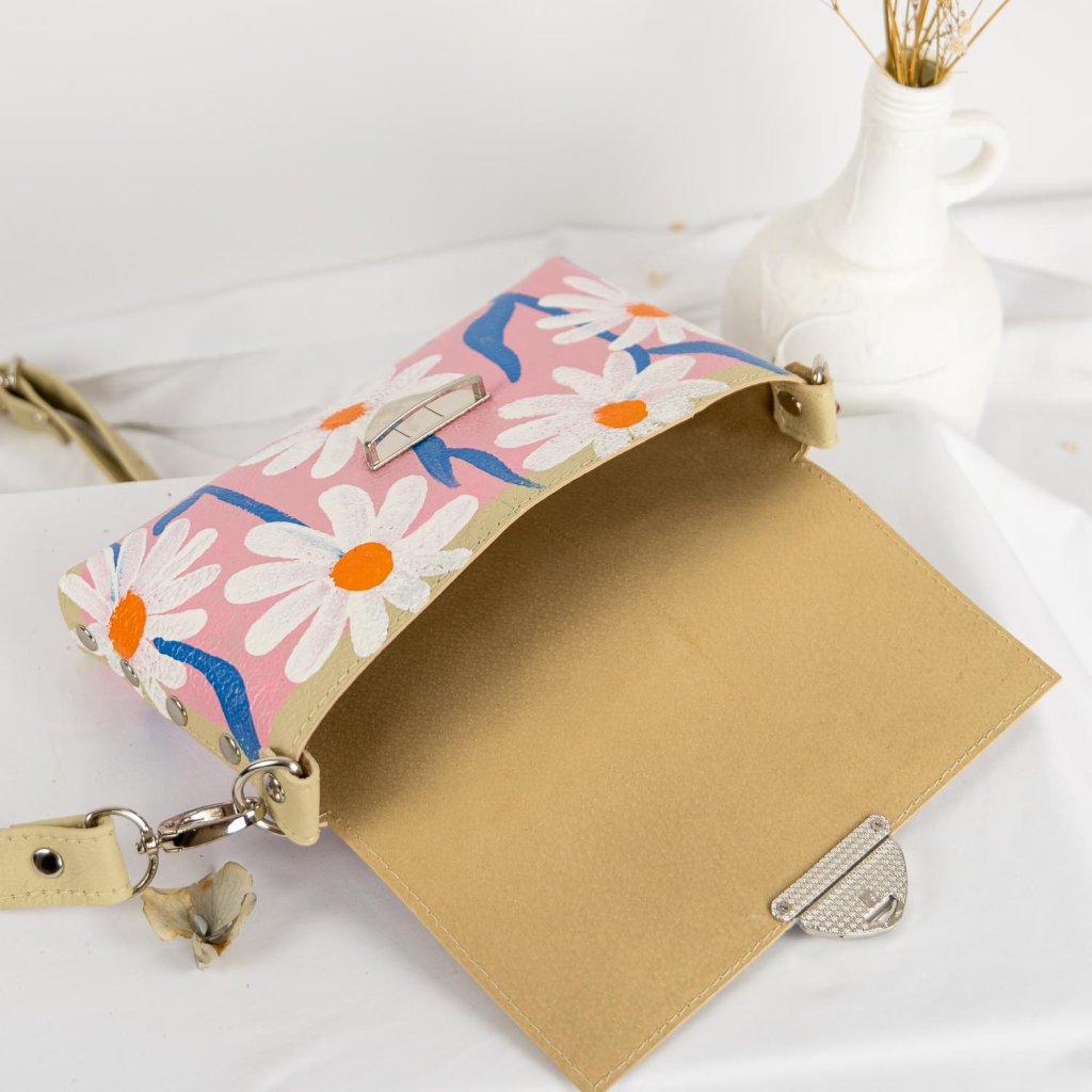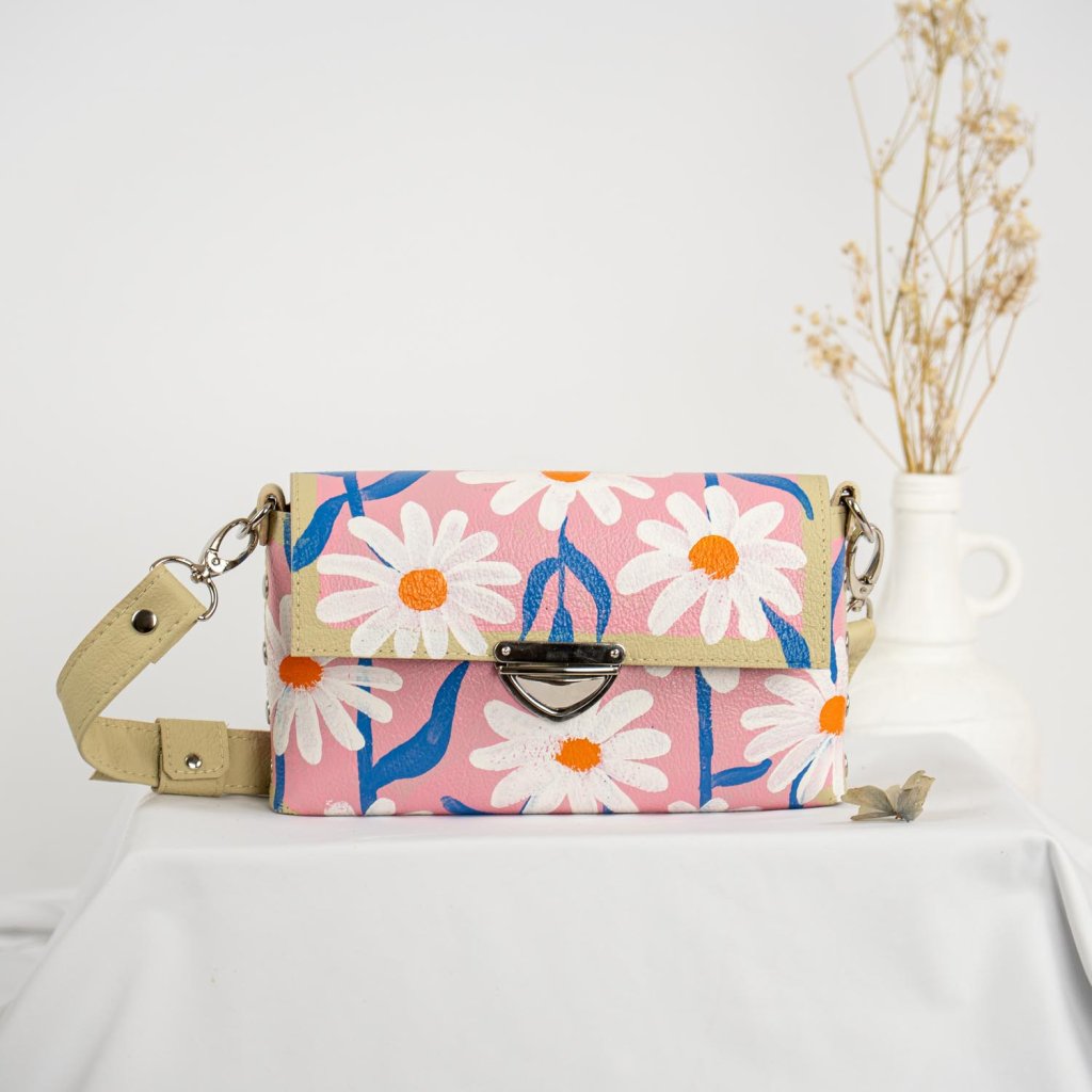 Ručne maľovaná kožená kabelka MidiMe (chamomile) Skladom