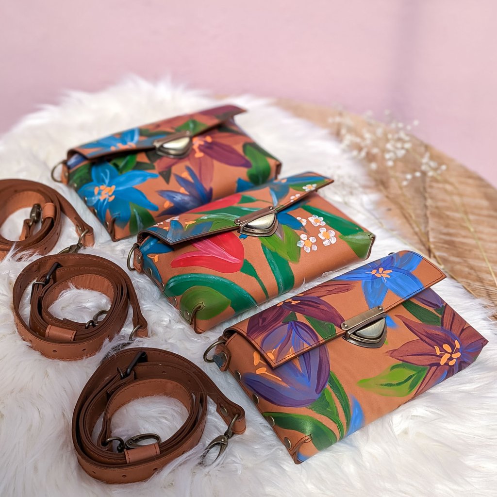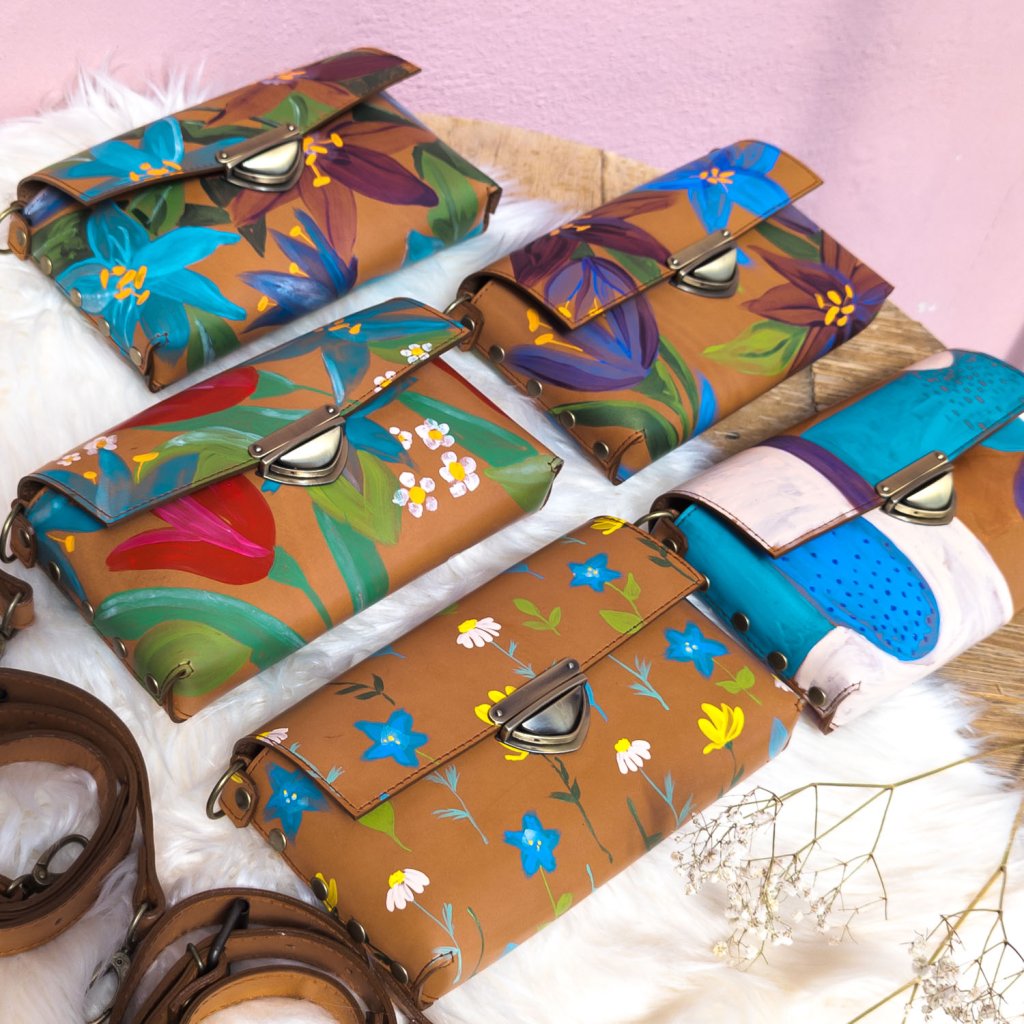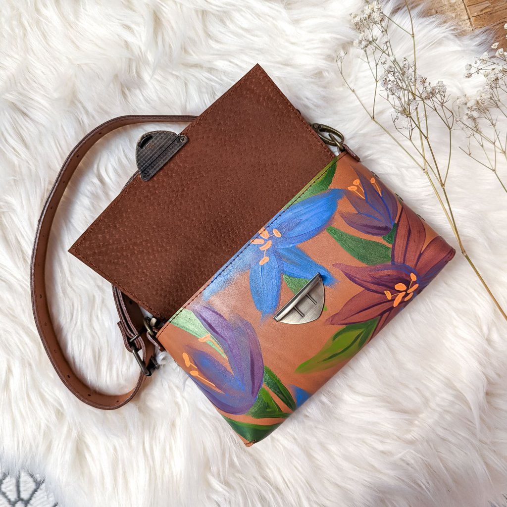 Ručne maľovaná kožená kabelka MidiMe (meadow III.) Skladom