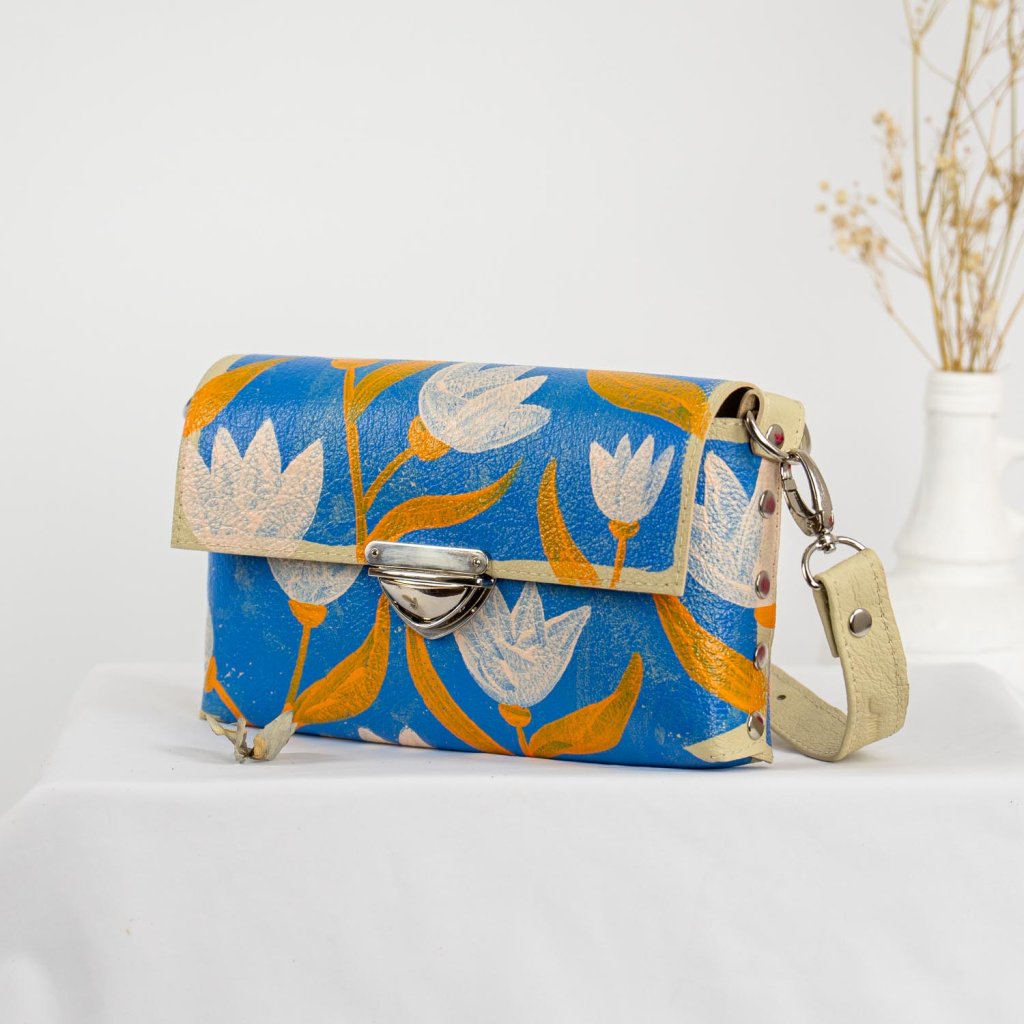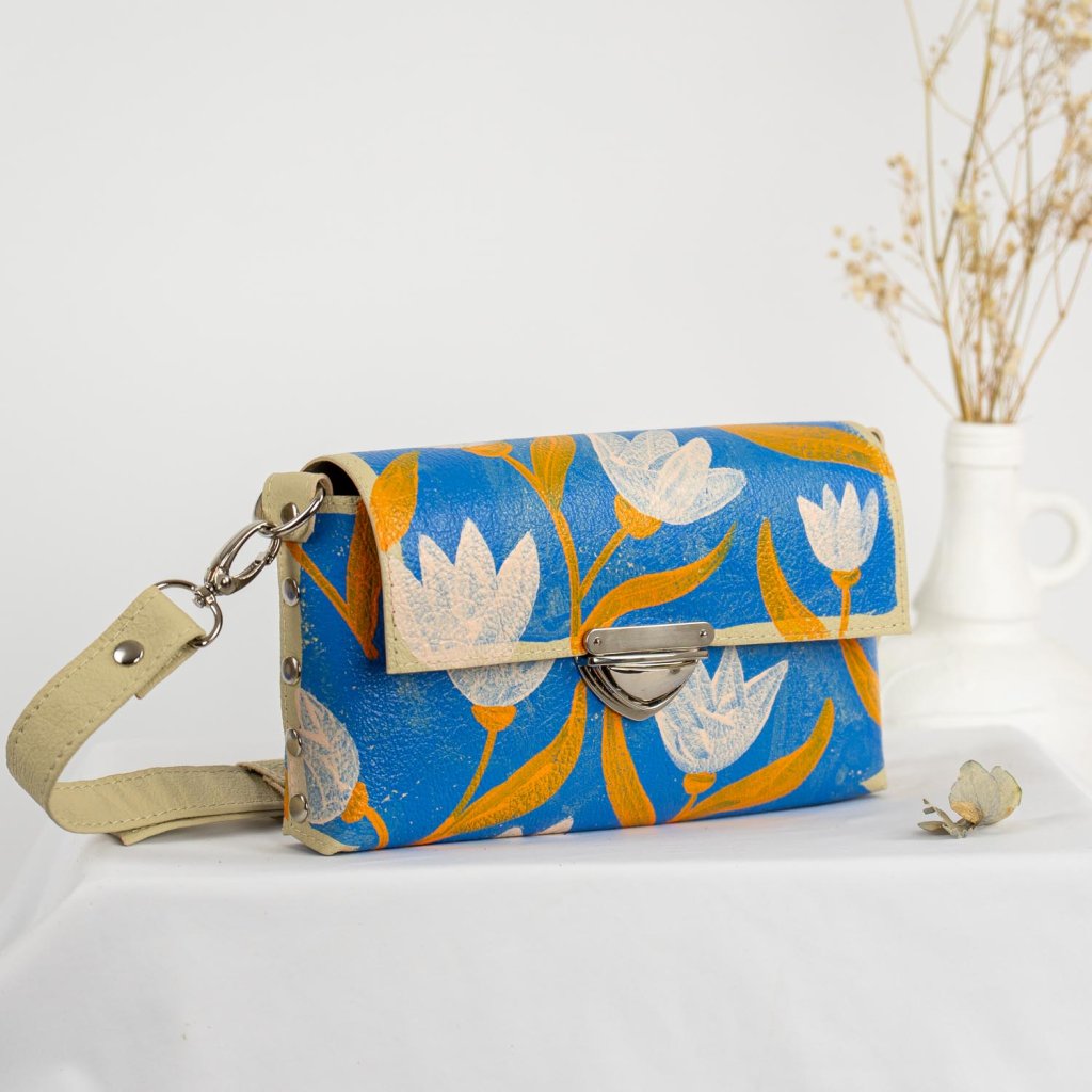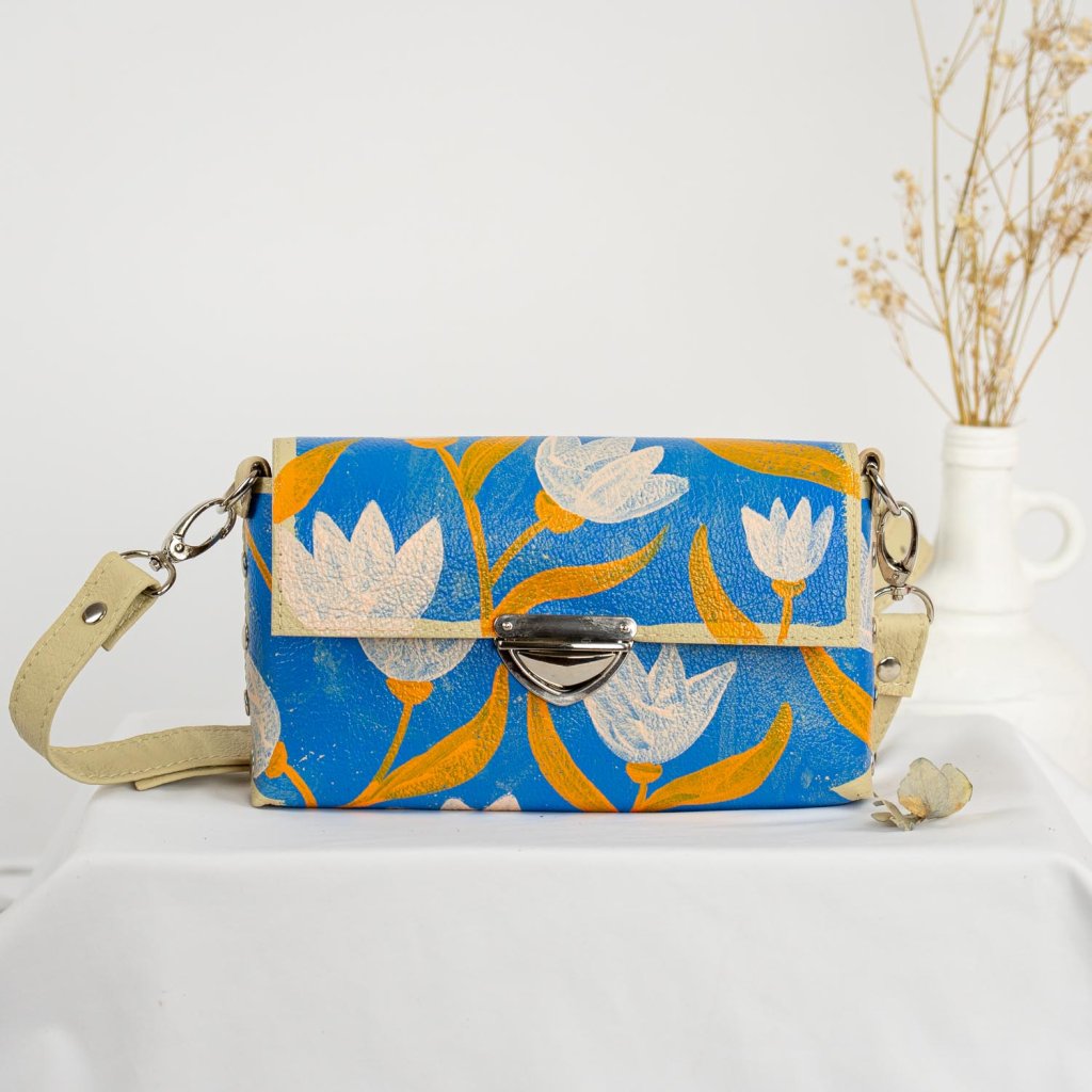 Ručne maľovaná kožená kabelka MidiMe (tulip) Skladom