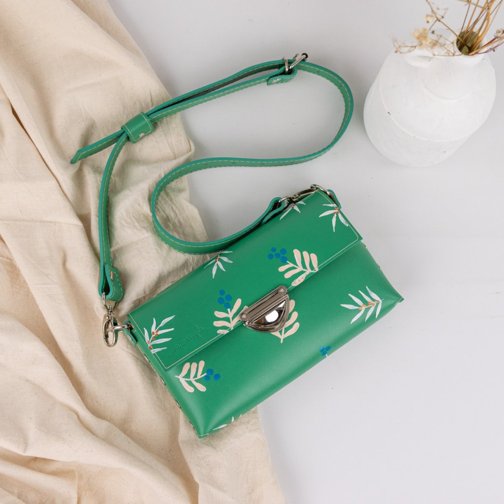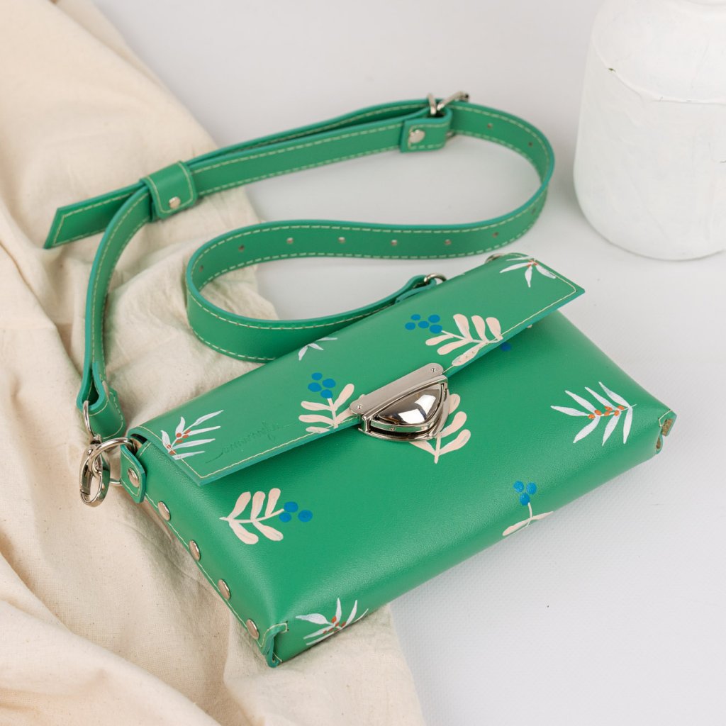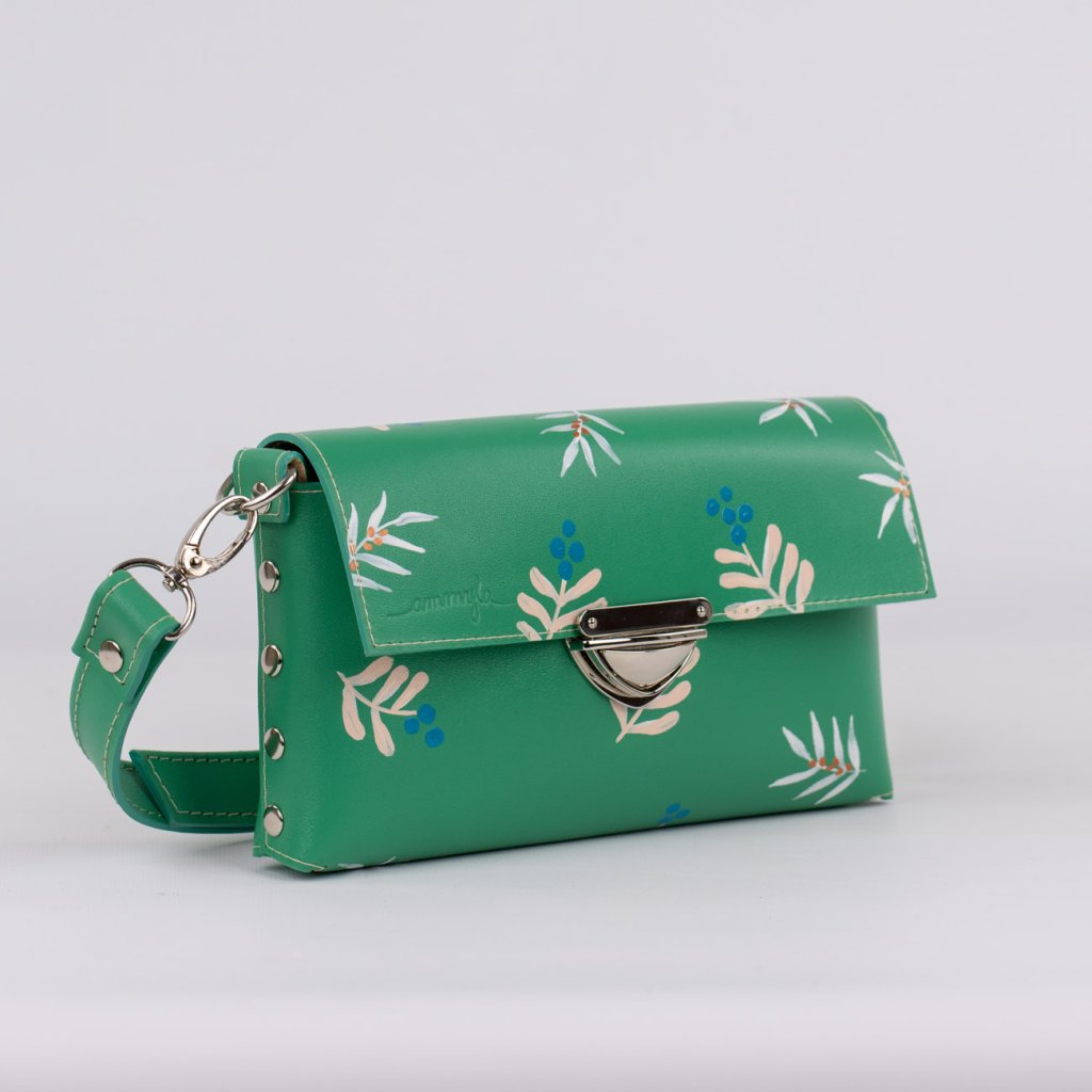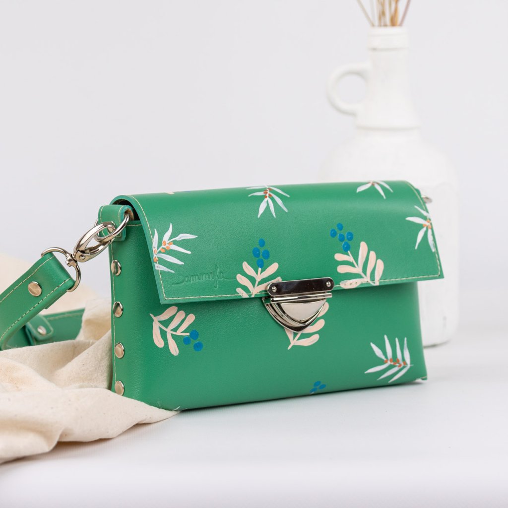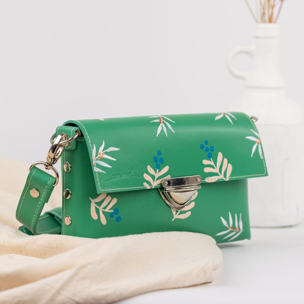 Ručne maľovaná kožená kabelka MidiMe (viridian) Skladom
